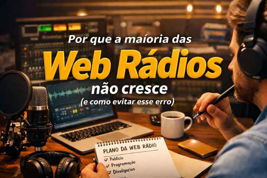 Um exemplo é o curso Web Rádio do Zero ao Controle Total, disponível na Cursando Mais, que mostra passo a passo como estruturar uma web rádio desde a ideia inicial até a organização da programação, ajudando novos projetos a começarem com uma base mais sólida e profissional.